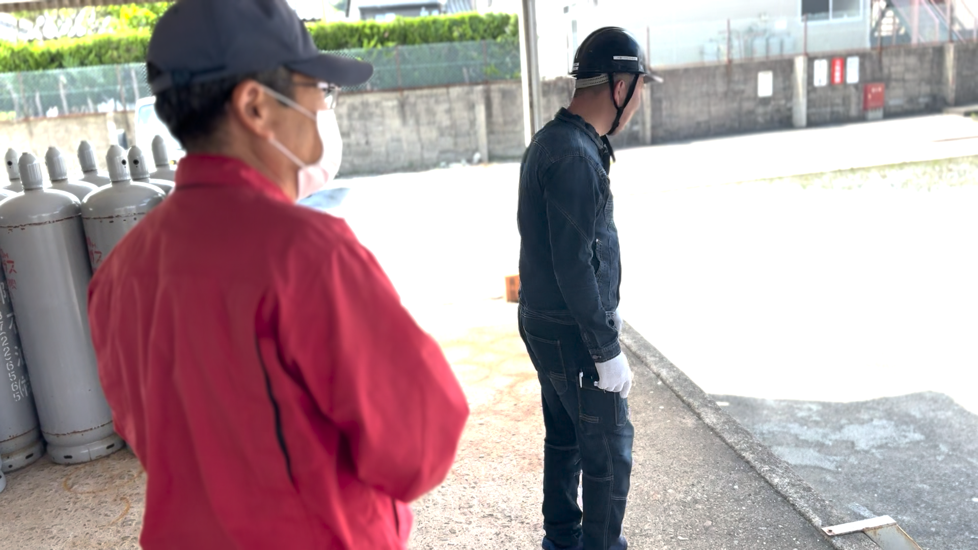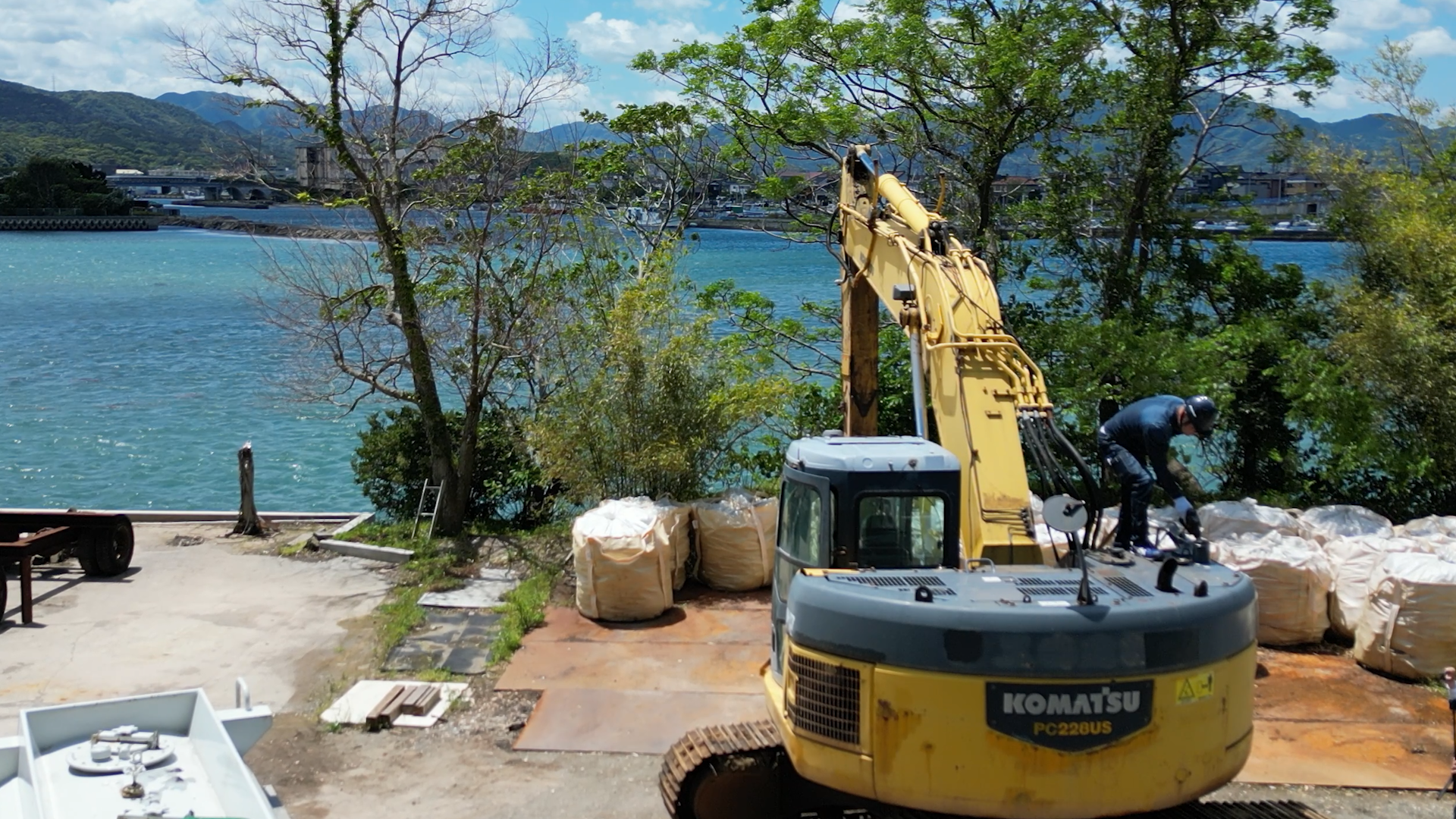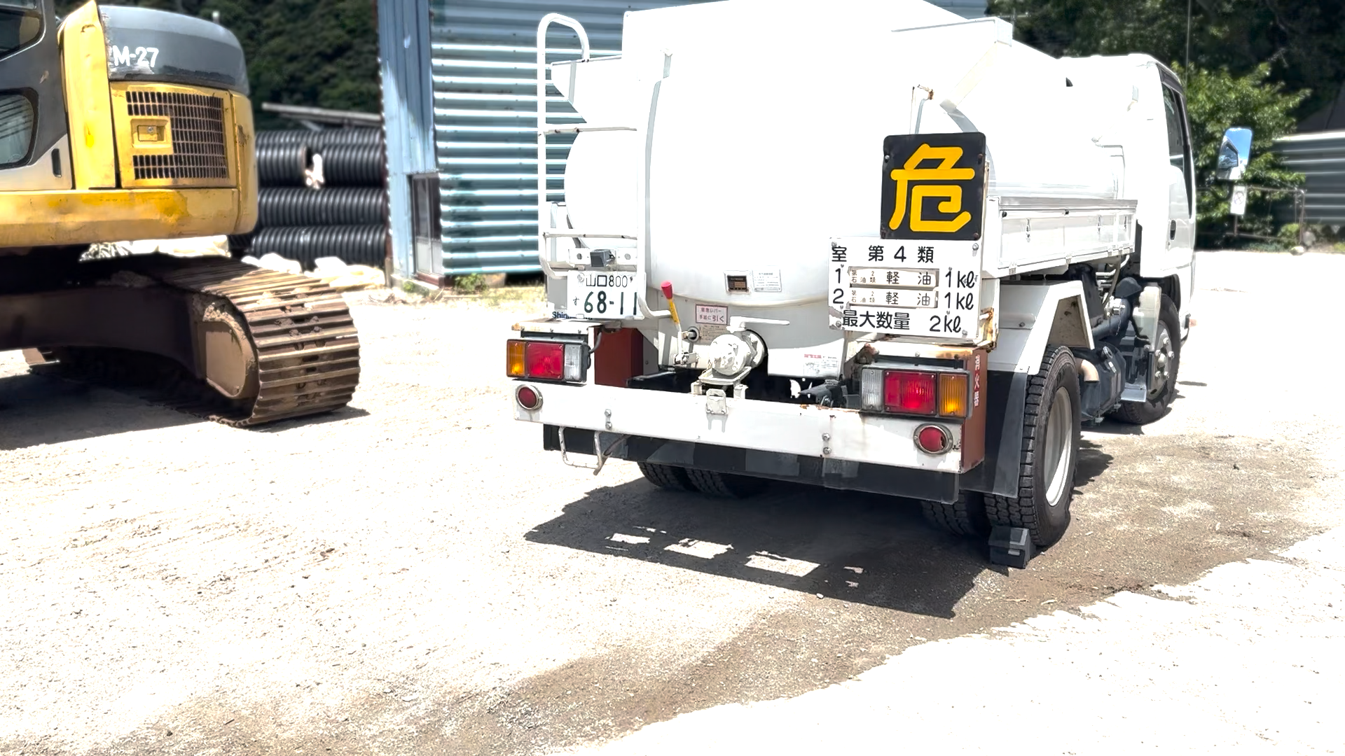 県道美祢油谷線砂利ヶ峠トンネル工事の重機燃料給油